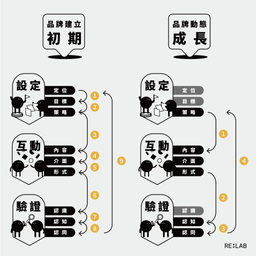所以在品牌成立初期,大部分使用這個模型都會從「設定」出發,再往下移動到「互動」和「驗證」,但是在品牌成立的動態成長過程中,就可能在「設定」不變的前提下,從「互動」和「驗證」出發。
