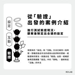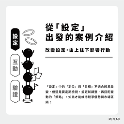 如果既有的「設定」和「互動」方法已經維持了一段時間,想要確認過去作法的成效以追求新的突破,或是驗證新的想法,就適合從「驗證」出發,經過確認後,再回頭調整「設定」中的「策略」,重新制定「互動」的作法。
