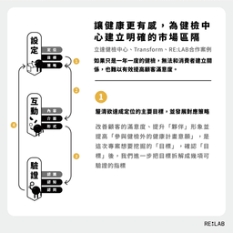 當時立達健檢中心的定位為「透過精準醫療,成為顧客的健康夥伴」,在定位不變的前提下,改善顧客的滿意度、提升「夥伴」形象並提高「參與健檢外的健康計畫意願」,是這次專案想要挖掘的「目標」,確認「目標」後,我們進一步把目標拆解成幾項可驗證的指標,例如:滿意度是否有顯著提升、參與健檢外的健康計畫意願和行為是否有增加等。
