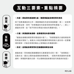 有的時候「設定」不需要調整,只是「互動」的成效不佳,這種情況只需要「回到目標受眾的需求思考他們在意的事」,重新調整「互動」的內容、介面與形式,就有機會翻轉溝通成效。